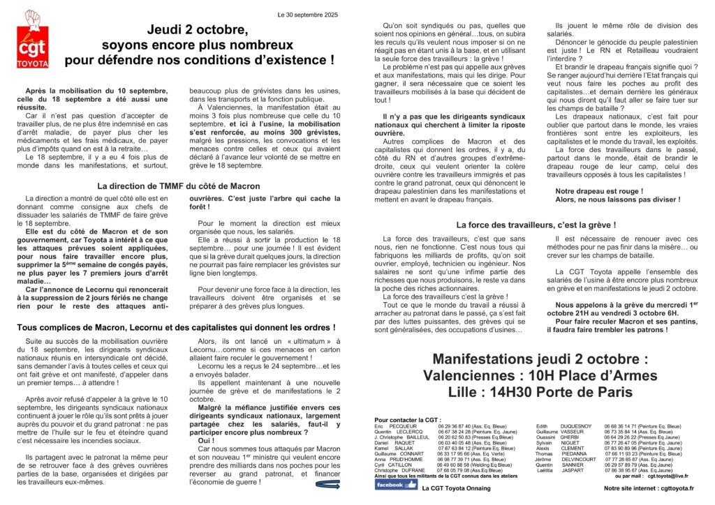 - Jeudi 2 octobre, soyons encore plus nombreux pour défendre nos conditions d’existence