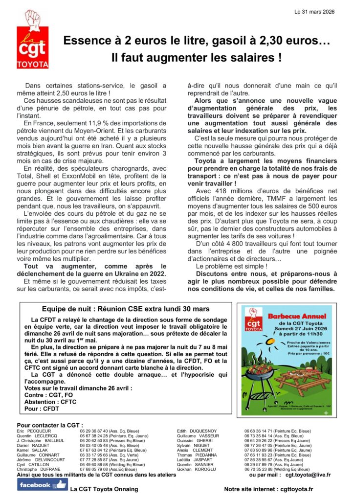 Notre dernier tract du 31 Mars 2026